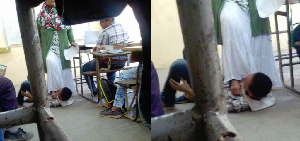 What on Earth is going on in Egypt’s schools? This is the second leaked post in the past couple of months exposing a case of student abuse. A photo went viral today of a social worker at Mohamed Abdou school pushing her feet against a student’s chest.