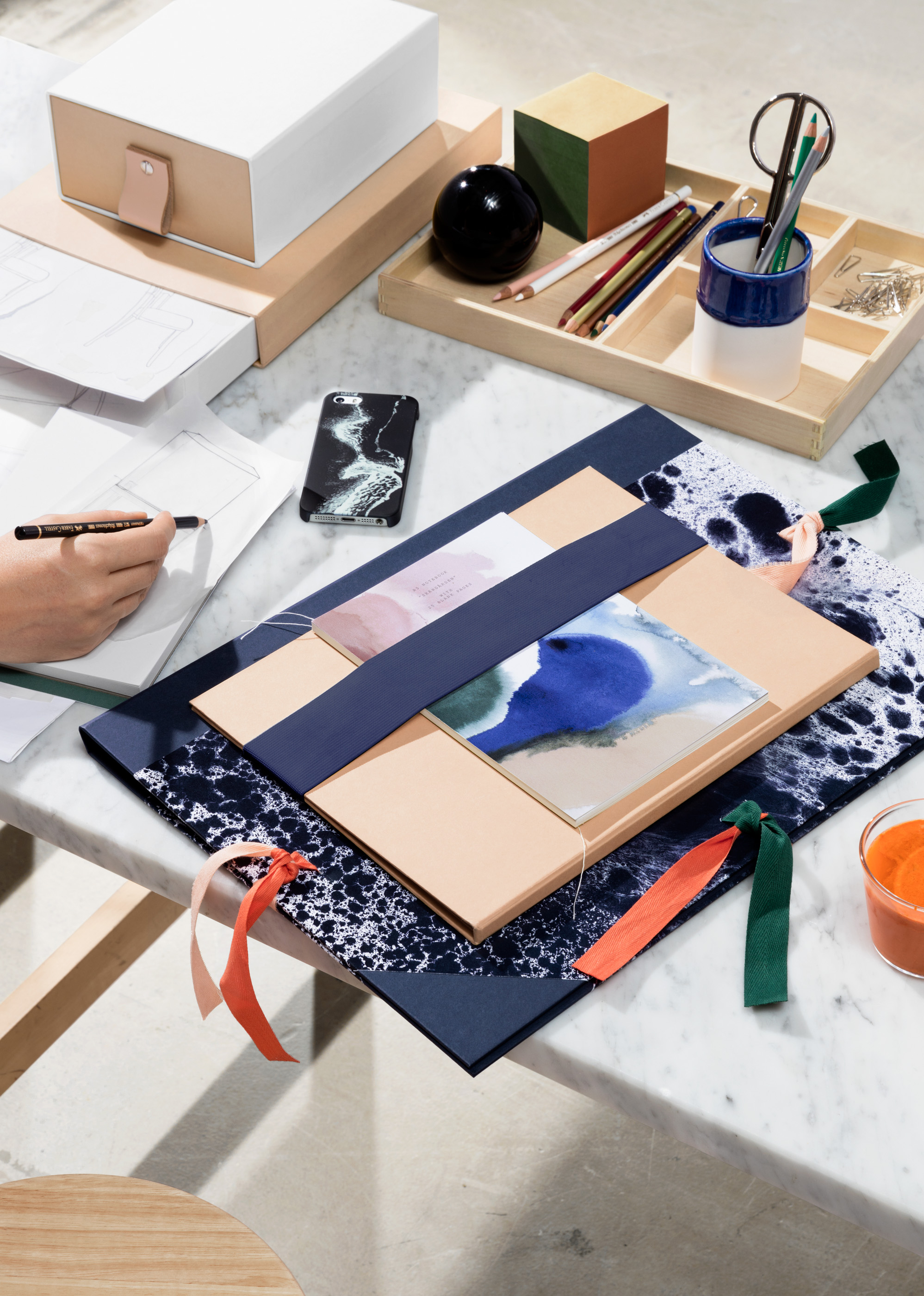 The Paris Collection is as dreamy and nostalgic as the city from which it borrows its name. This collection has a traditional heart, revealing marbled prints alongside gold-foiled phrases in French. You can just smell the Edith Piaf love songs on those pieces.