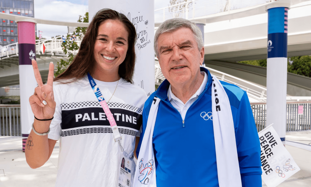Among the athletes present, there was Palestinian swimmer Valerie Tarazi who snapped a photo with IOC President Thomas Bach. Kimia Yousofi, part of Afghanistan’s gender-neutral Olympic team, also made an appearance and signed this year’s Truce Wall.