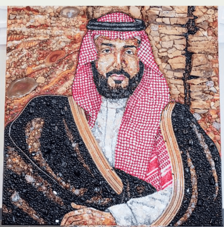 Crown Prince Mohammed bin Salman inspired Al-Zaidi, who spent five months making a portrait of him out of gemstones and other minerals she obtained from Jabal Tuwaiq, a mountain in the Kingdom’s north. It took her two million pieces to finish her artwork.