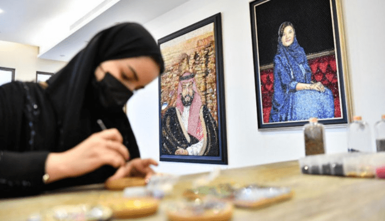 Crown Prince Mohammed bin Salman inspired Al-Zaidi, who spent five months making a portrait of him out of gemstones and other minerals she obtained from Jabal Tuwaiq, a mountain in the Kingdom’s north. It took her two million pieces to finish her artwork.
