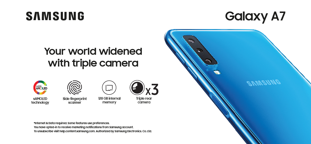 Additionally, the camera possesses an extra smart ‘scene optimizer’. This basically sets a category for the subject being shot, in addition to adjusting the color, contrast, and brightness to guarantee a premium image quality. Add to that a sleek fashionable design that makes a statement. Not to mention that Galaxy A7 comes with Bixby and Samsung Health to make daily lives of users much easier.
