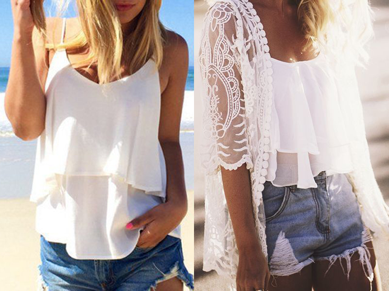 Who said you only wear tank tops on vacay? Nobody says no to the beach, not even white camis.