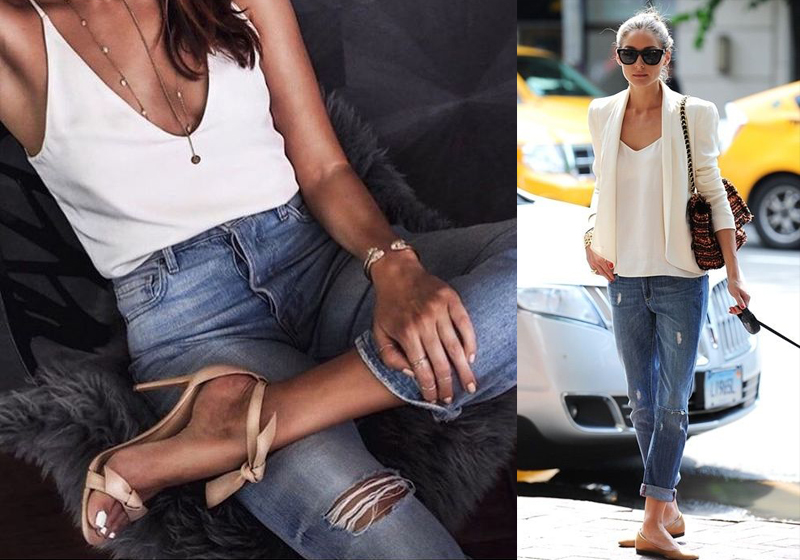Almost everything looks cool on your favorite pair of jeans; especially a white garment. Tuck it in or let it loose, wear a skinny pair or boyfriend jeans or a ripped one, heals or flats; your call.