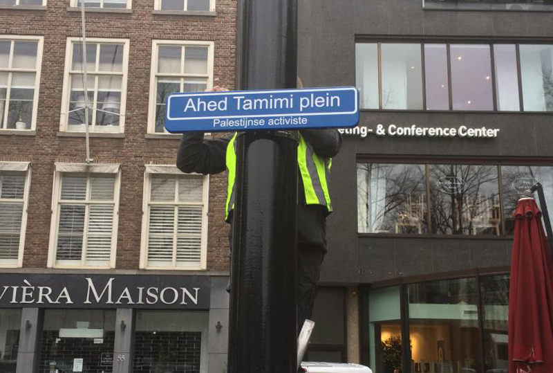 Ahed Tamimi Street; no it’s not in Palestine, it’s in the Netherlands. With a matter of fact, this is the name of not one, not two, but more than 10 street signs in the Netherlands. Dutch activists honor the Palestinian 17-year-old by renaming streets in 13 cities across the country. Those include Amsterdam, The Hague, Rotterdam, Groningen, Leeuwarden, Grijpskerk, Assen, Leiden, Heemstede, Tilburg, Vlaardingen, Maarssen, and Nijmegen.