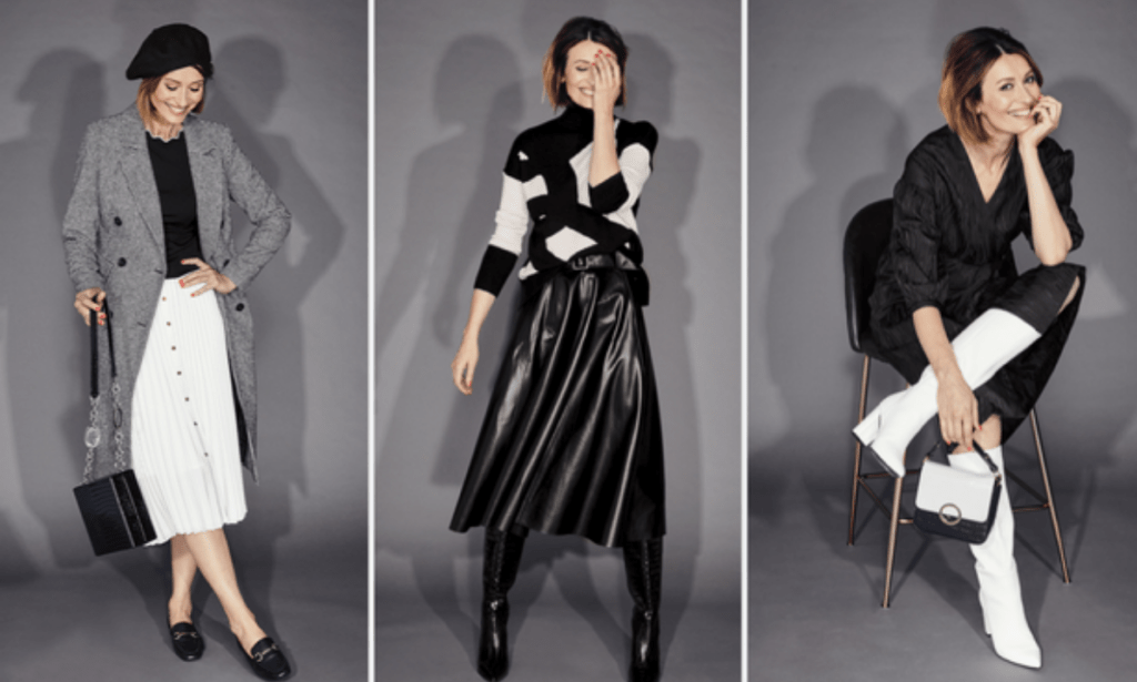 Maya Diab is sporting for this trend in an outstanding black and white, with breathtaking shoes.