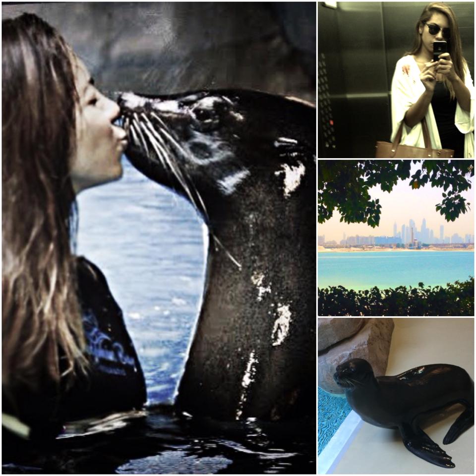My excitement was increasing rapidly. We were escorted by Andreas and Happy, the two Marine Specialists, into the indoor pool area where Sanga, the 12-year-old South African Fur Seal born in a zoological facility in France and brought to Dubai five months ago, stood with one hand up, waving and greeting us. I was in love.
