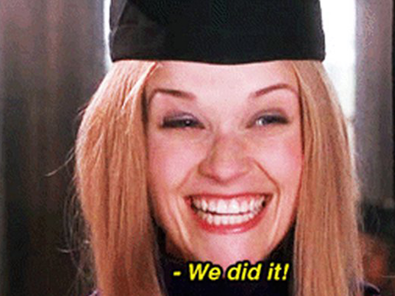 Seriously, it’s all not worth wasting your energy. At the end of the day, you’re only freaking out over a few grades that aren’t really worth anything if you think about it. Relax, you’ll graduate and you’ll be all Elle Woods about it.