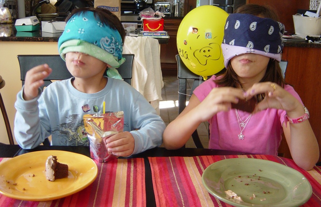 Blindfold your kids and make an assortment of finger foods. Give them a glass of water to drink between tastes and let them guess what they are eating. You can always trick your kids into eating broccoli and give them bonus points if they don’t spit it out.