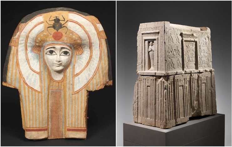The face of the Egyptian sarcophagus once belonged to a wooden anthropoid coffin before it was split in two. These faced coffins were believed to be a perfect substitute for the deceased that is housed within it should anything happen to them. In December 2015, it was bought by the Met from the Pierre Bergé auction house.