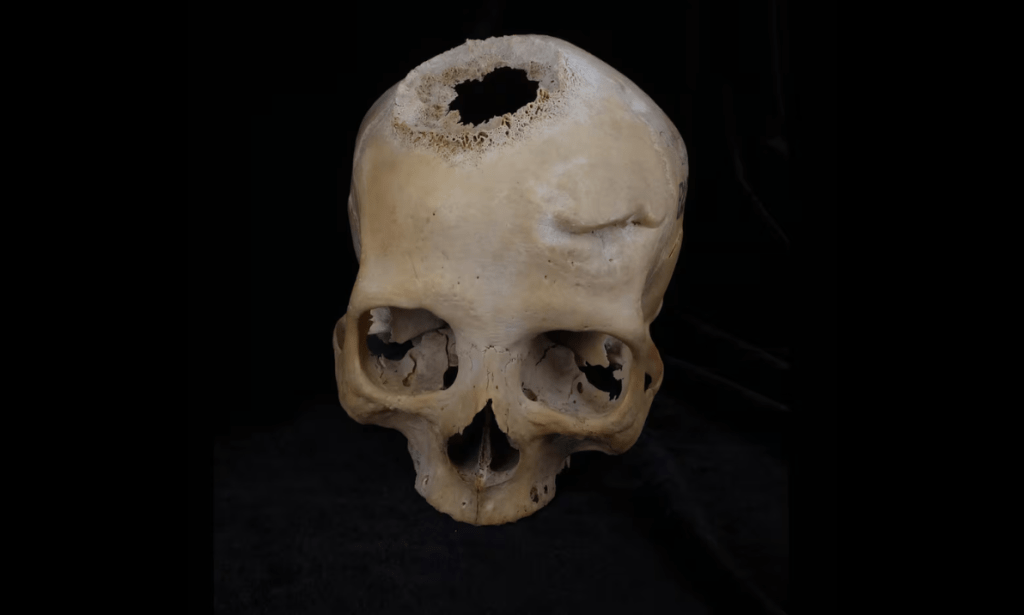 Using a digital microscope and micro-computed tomography (CT) scans, it was discovered that the skull had tumor scars, and around those scars were cut marks around the tumors. That suggests that sharp metal instruments were used to remove the tumor growths.