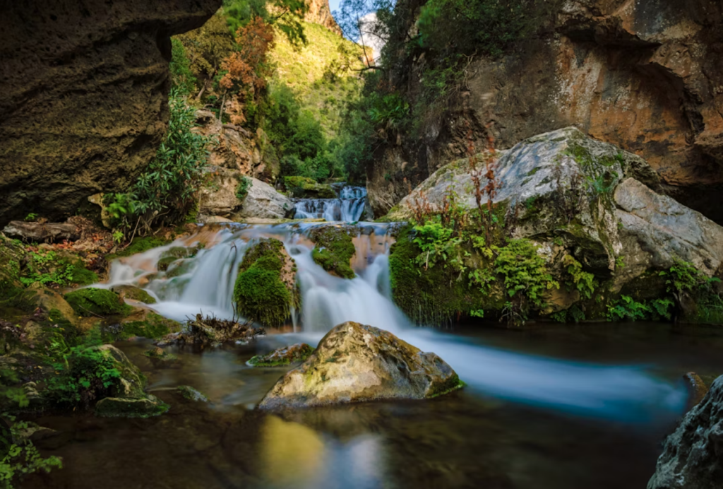 Near Chefchaouen, Talassemtane’s blue-green valleys hide waterfalls, cedar forests, and the rock bridge known as God’s Bridge. The trails wind through forested slopes and rushing rivers, offering hikers a softer, greener Morocco. Akchour’s waterfall is a favorite endpoint — cool mist after a sunlit climb.