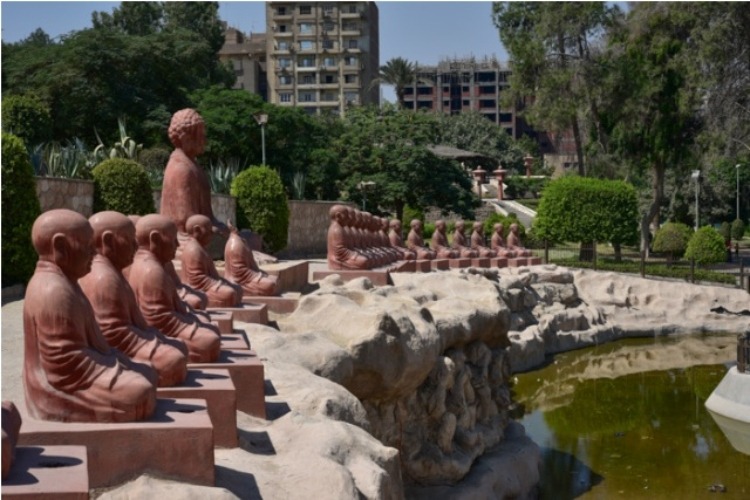 The park, which was constructed and opened in 1917, has a strong Japanese vibe to it, which can be seen in the intricacies of things like kiosks, light posts, and the garden design. It was designed by Egyptian architect Zulfaqar Basha to symbolize the civilizations of the East and is located in Helwan, Cairo. The park is known for its unusual statues and is full of fish ponds, hills, canals, and a variety of trees. The garden, for example, is adorned with more than 30 Buddha statues, including the iconic seated Buddha statue over a Lotus flower and three elephant statues.