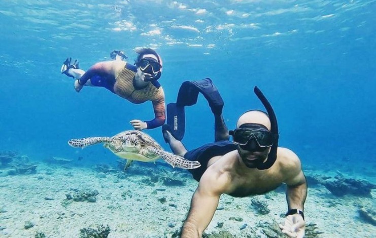 Made out of three giant rocks hence the name, the place is full of gorgeous things to see, including the friendly jawfish with which you can play some games, Parrot fish, and the stars of our article, sea turtles!