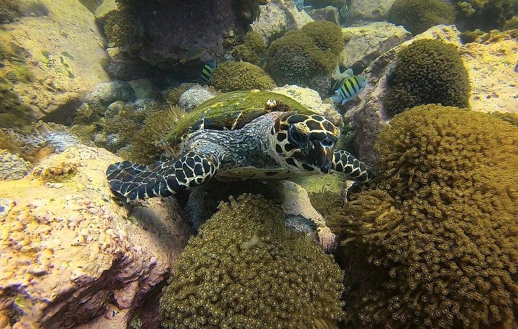 The turtles in the area are attracted to the beautiful corals, where they feed on the surrounding algae and seagrass, making them easier to find.