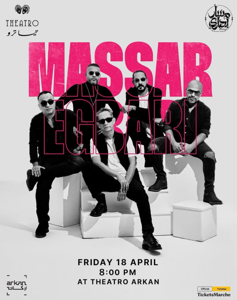 The Egyptian alt-rock icons are back with a live performance at Theatro Arkan on Friday night. Expect a packed venue, all your favorite hits, and the kind of energy only Massar Egbari can bring.