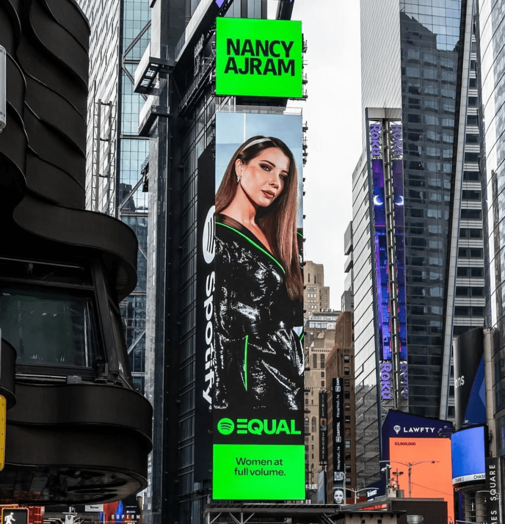 Lebanese pop icon Nancy Ajram just got her second Times Square moment as Spotify’s EQUAL Arabia ambassador for July 2025, celebrating her latest album Nancy 11. She first made history in 2021 as the first Arab female artist featured there.