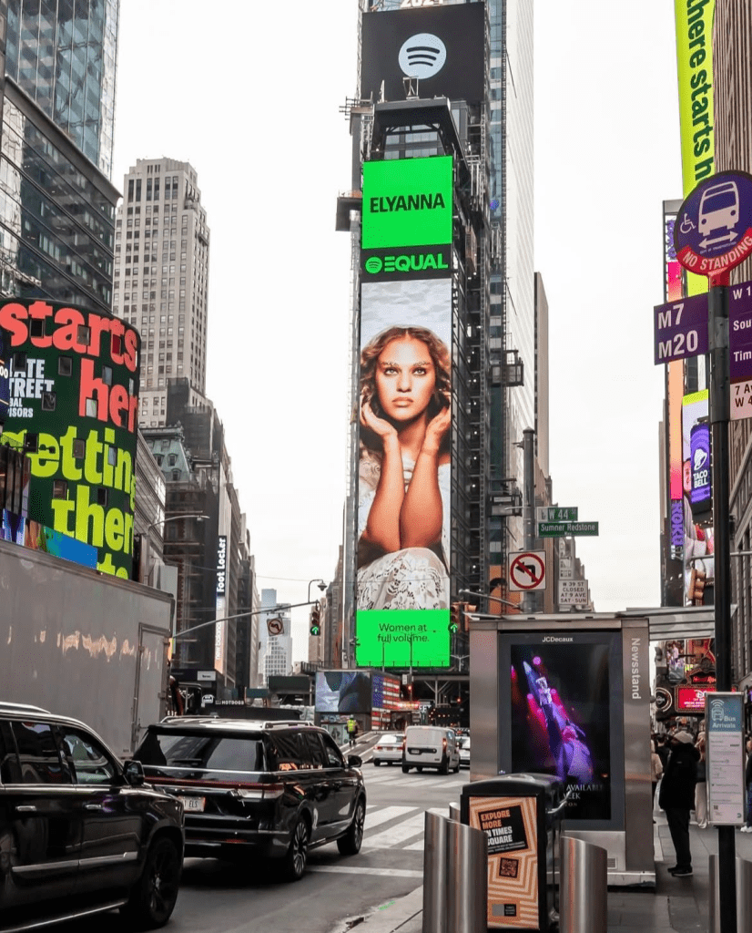 In 2024, Palestinian-Chilean rising star Elyanna lit up Times Square through Spotify’s EQUAL campaign. Her viral hit Ganeni — a dreamy blend of Arabic lyrics and global pop — made her one of the most exciting names in alt-Arabic music right now.