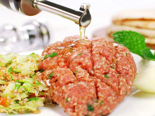 6) Keep the dish in the fridge until serving because the Kibbe should be served cold.