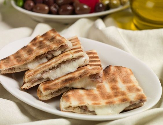 5) Cover the bread/meat side of the pita with the plain side; you can cook it in a sandwich maker or on a grill or a stove.