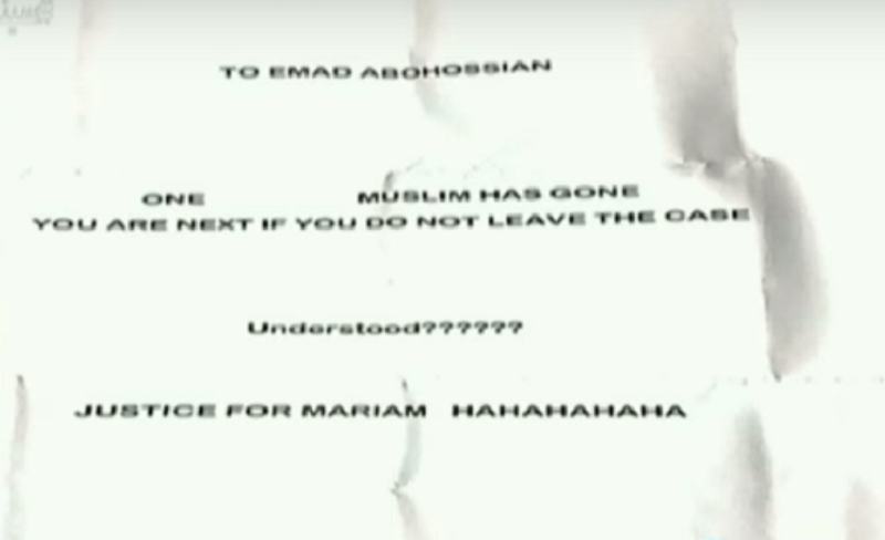In April, the victim’s lawyer received a death threat to drop the case via a letter sent to his own home’s post-box. The anonymous letter was straightforward, with the message saying: “One Muslim has gone you are next if you don’t leave the case, understood?”. Abu Hussein instantly told the British police, and he was advised to leave his home for necessary legal measures, but he only moved his daughters away.