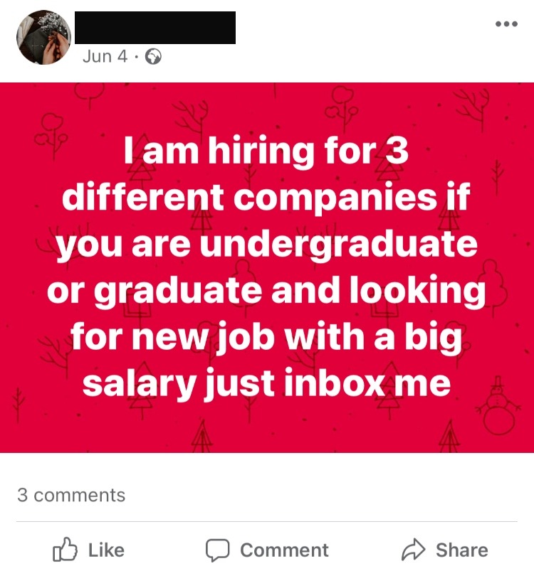 Other than Facebook, there are also many WhatsApp groups you can join as well. They can be quite effective. This approach will help cast a wider net when it comes to job hunting.
