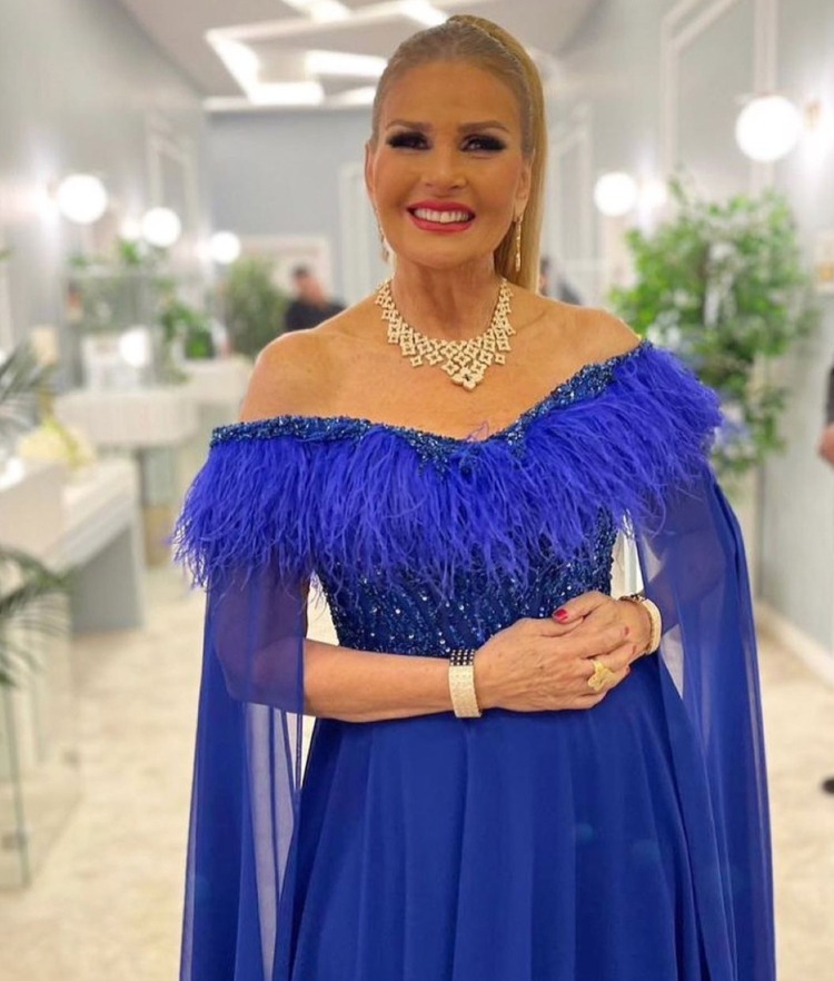 Egyptian actress, Youssra kicked things off by celebrating El Mougy on stage with his family. As she remembered his greatest hits, Youssra didn’t just wear one head-turning gown but two. First a sparkling black gown by Etoile La Boutique then a royal feathery blue gown by Tony Chaaya.