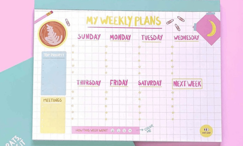 At school, you’ll have to balance your assignments, the exam study period, extracurriculars, and school activities. A weekly calendar planner can be a great help.
