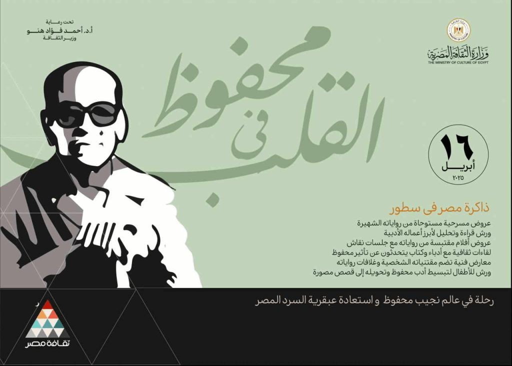 Following nationwide celebrations of Shady Abdel Salam, Shady Day, and Salah Jahin, Our Uncle… Salah Jahin, Egypt’s Ministry of Culture is back with the third installment in its cultural tribute series. This time, on April 16, it’s honoring the legendary novelist Naguib Mahfouz.