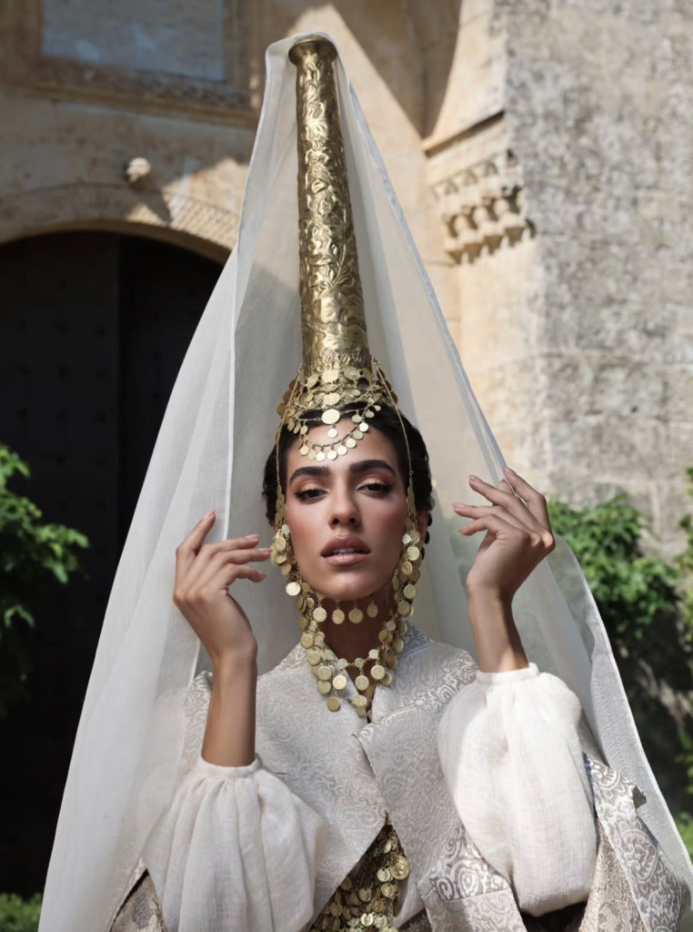Fast forward to 2024: Nada Koussa wore the tantour at the Miss Universe pageant, styled by Lebanese designer Joe Challita. The towering cone and flowing veil captured global attention, showing that Lebanese culture and fashion history still sparkle on the world stage.
