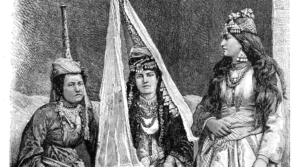Travelers like David Urquhart described young women standing on rocks, their towering tantours announcing their noble lineage. Bou Tannous noted that royal tantours were gold, encrusted with jewels, while commoner versions were silver or copper, often shaped like an ibex horn.