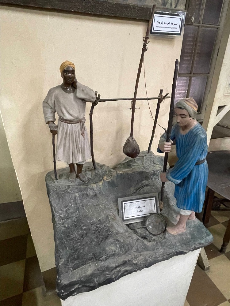 Egypt’s rich past and traditions showcased prominently in the museum, Ibtesam pointed at a statue of a man holding a shadoof, a long pole mounted like a seesaw with a bucket hanging from its long end while on the short end there is a weight. It was used to fill a bucket with water from the Nile and transfer it to the grasslands for irrigation, when she saw it, she said “my grandpa used to use it.”