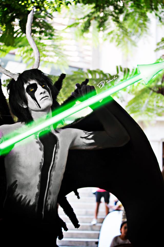 This is a full body paint cosplay with some fabric and weapons. I build up the scythe weapon using wood and stainless steel pipes and I got the help of my dear friend Nina Kamal to complete my transformation.