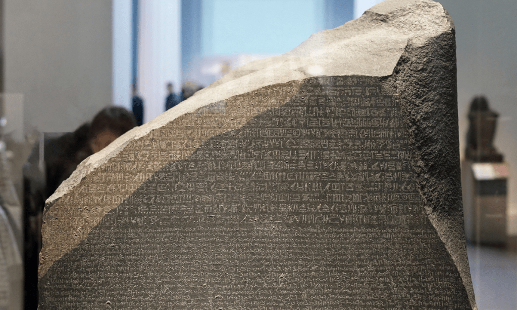 One of the most important artefacts in the British Museum is probably the Rosetta Stone, which is said to hold the key to understanding Egyptian hieroglyphs. It is a tablet of black rock called granodiorite, and it has also been the topic of great controversy.