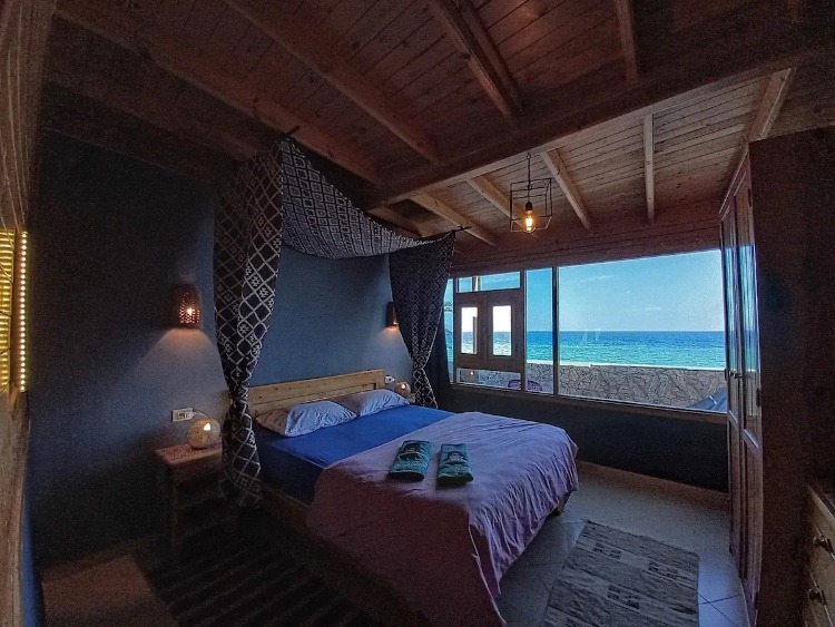 When it comes to Airbnb itself and its architectural style, we can say that it fits in perfectly with Dahab’s traditional building trend of brilliant colors and stone carvings. What’s also special about the Beachfront Penthouse is that it offers the most affordable price so far in terms of a typical Airbnb stay with an average night costing $85.