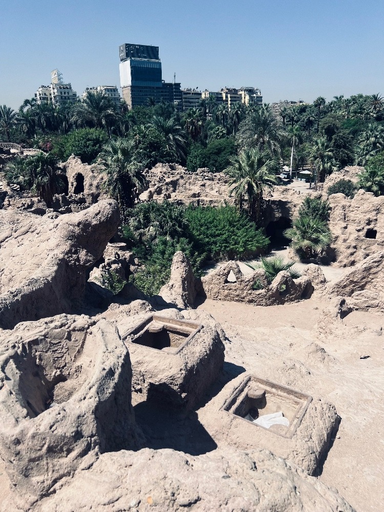 Before going into the caves, I decided to climb on top of them first to see the view, and it was gorgeous. The trees and the lush gardens all made it look so picturesque and serene. From atop, you can also see the tall buildings of Zamalek and I was even told that the legendary Egyptian musician, Abdel Halim Hafez lived in one of those buildings that look directly into the garden.