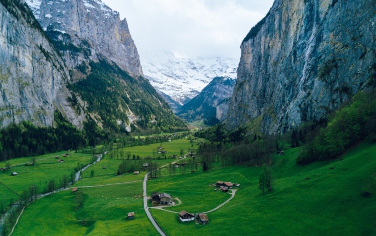 There is no place in Europe more stunning than the Swiss valley. Everything here is perfect: mountain waterfalls, snow-covered cliff tops, cozy cottages – you can feel the coziness and warmth of home.