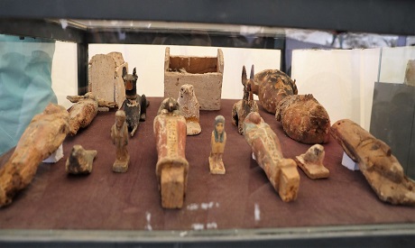 Ushabti figurines made of faience, pots, clay, and wood were also unearthed; canopic jars and an anthropoid cartonnage sarcophagus have been found as well.