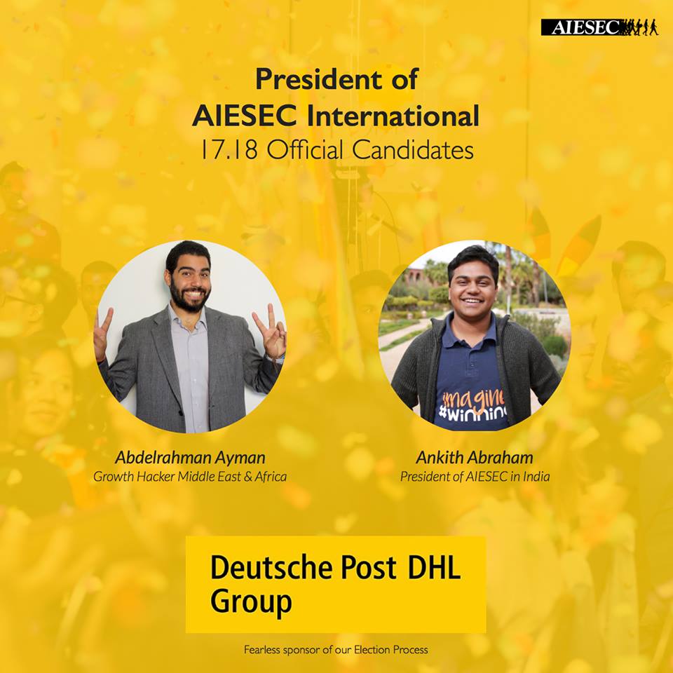 He joined AIESEC Cairo University which he later became the president of in 2012, then went on to join the AIESEC Egypt committee in 2014. Abdo then applied to become the president of AIESEC Egypt which he lost to Yehya Al Mandarawy back in July 2014. But that didn’t stop him as he applied for it again to get it the next year. Oh, and there’s more. Abdo applied for AIESEC International in Rotterdam, The Netherlands becoming the director of the Middle East and Africa, then went on against Ankith Abraham, the president of AIESEC India, for the role of president of AIESEC International 2017-2018 which he snatched less than 24 hours ago.