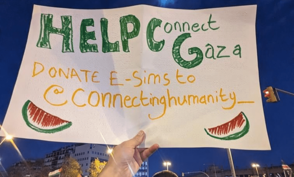 Since the start of the genocide, the entire Gazan strip has been cut off from telecommunications on more than one occasion. That’s how Connecting Gaza came into being, an initiative spearheaded by Egyptian author and activist Mirna El Helbawi, whose sole goal is to provide Gazans with e-SIMs.