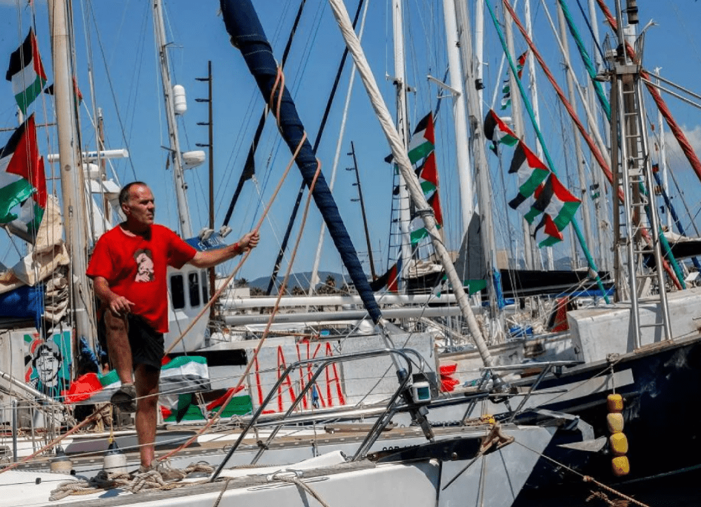 A convoy of 20 vessels loaded with aid supplies and international activists left Barcelona on Monday, resuming its voyage toward Gaza after strong winds had briefly forced it back to port. The flotilla’s departure was marked by chants of “Free Palestine”, shared on its official Instagram account, where activists declared: “We’ve set sail. Our mission to break the Gaza siege continues.”