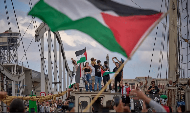 A convoy of 20 vessels loaded with aid supplies and international activists left Barcelona on Monday, resuming its voyage toward Gaza after strong winds had briefly forced it back to port. The flotilla’s departure was marked by chants of “Free Palestine”, shared on its official Instagram account, where activists declared: “We’ve set sail. Our mission to break the Gaza siege continues.”