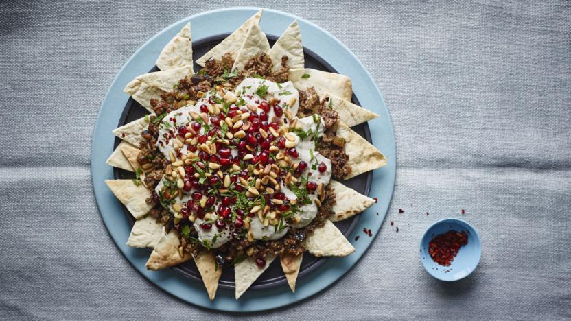 Beef fatteh nachos