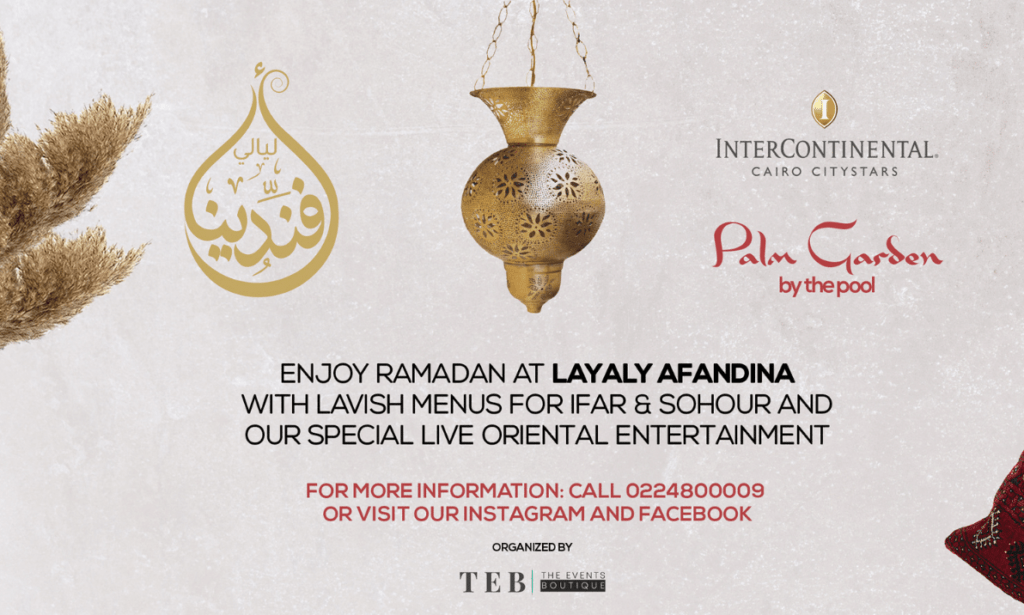 The tent will be operating from tomorrow, Sunday April 18th at Palm Garden – Intercontinental City Stars featuring a fusion of oriental entertainment, as well as delicious iftar and suhour. So what are you waiting for? Ramadan with Afandina is all about great vibes and entertainment!