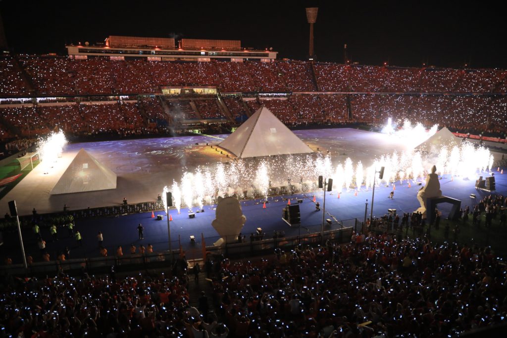 With three pyramids in the middle of Cairo Stadium, the show portrayed everything that made Egypt. From Pharonic times, visuals of River Nile streaming across the football field, to modern day Tanoura dancers, and so much more. The show ended with a performance by Hakim, Nigerian singer Femi Anikulapo-Kuti and the Ivorian singer Dobet Gnahoré.