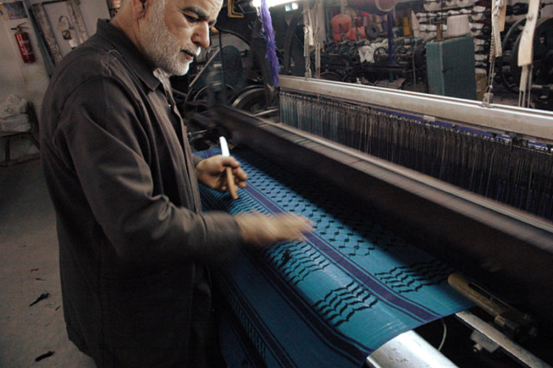 The Hirbawi factory has 15 machines and it used to produce 150,000 keffiyehs annually since the early 1990s. However, after the opening of trade with the outside world and the emergence of more competitors, only 4 machines remain in operation producing 10,000 scarves a year, but not a single one of them is exported.