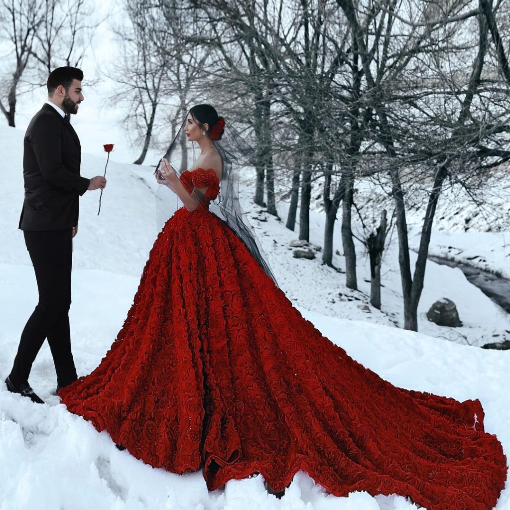 Valentine’s Day flowers are overrated! Instagram worthy red gown in the middle of snow. I know all the ladies here are jealous.