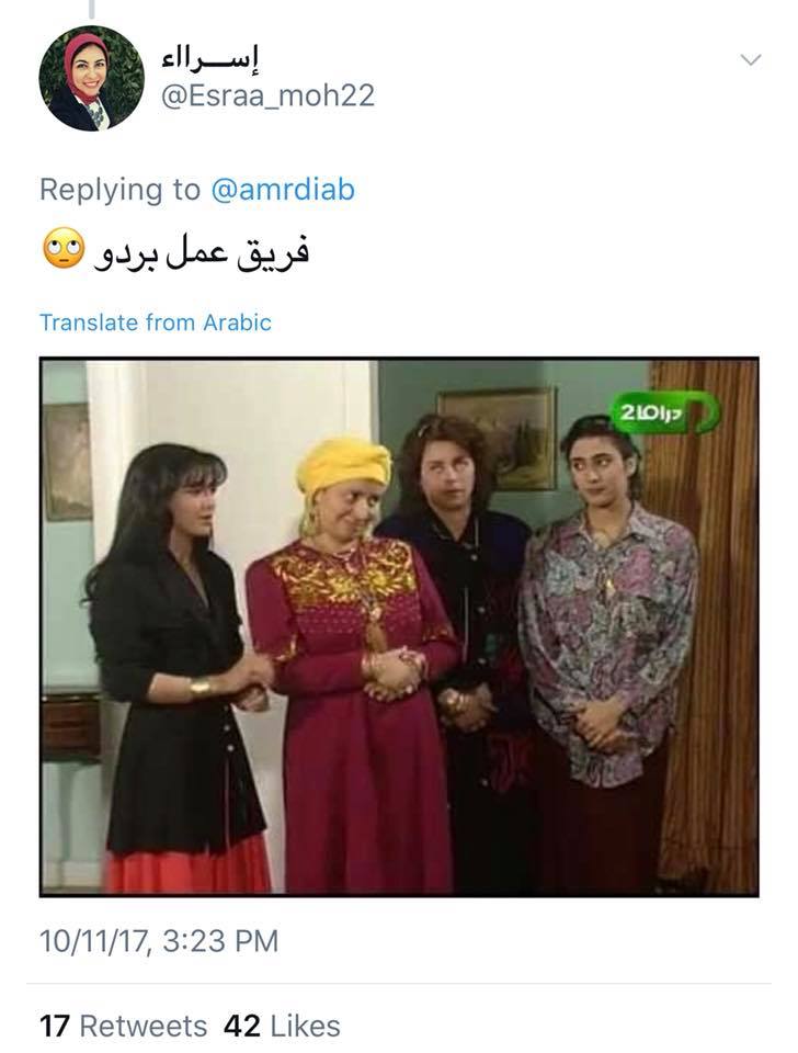 Okay so, Amr Diab tweeted a picture yesterday of himself and his “work team” for his upcoming movie, and the the world instantly changed — particularly because of Dina El-Sherbini’s presence next to him.