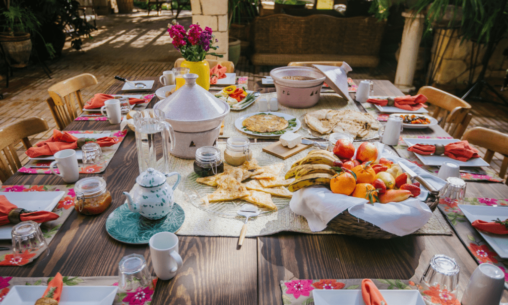 As the sun was approaching the horizon, we all took our seats on an extended wooden table below an enchanting brick archway on the porch. Rich hues of amber and chestnut dominated the wooden table along with the rich assortment of dishes ranging from colorful salads to plates of juicy grilled chicken.