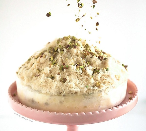 Making the dessert could not be easier as you’ll only need six ingredients to prepare it. Simply put, you’ll only need phyllo sheets, melted butter to help it get crunchy, sweetened condensed milk for the added sweetness, whipped cream for its creamy texture, cinnamon and assorted nuts for an added crunch. Start off by stacking one sheet of phyllo at a time onto an open-faced dish until it fills up and then grab a brush and spread the dough with butter. Follow that by baking the pie until its golden brown then drizzle it with sweetened condensed milk, whipping cream, cinnamon and nuts. To get the measurements and entire recipe, you can check out cleobuttra’s recipe